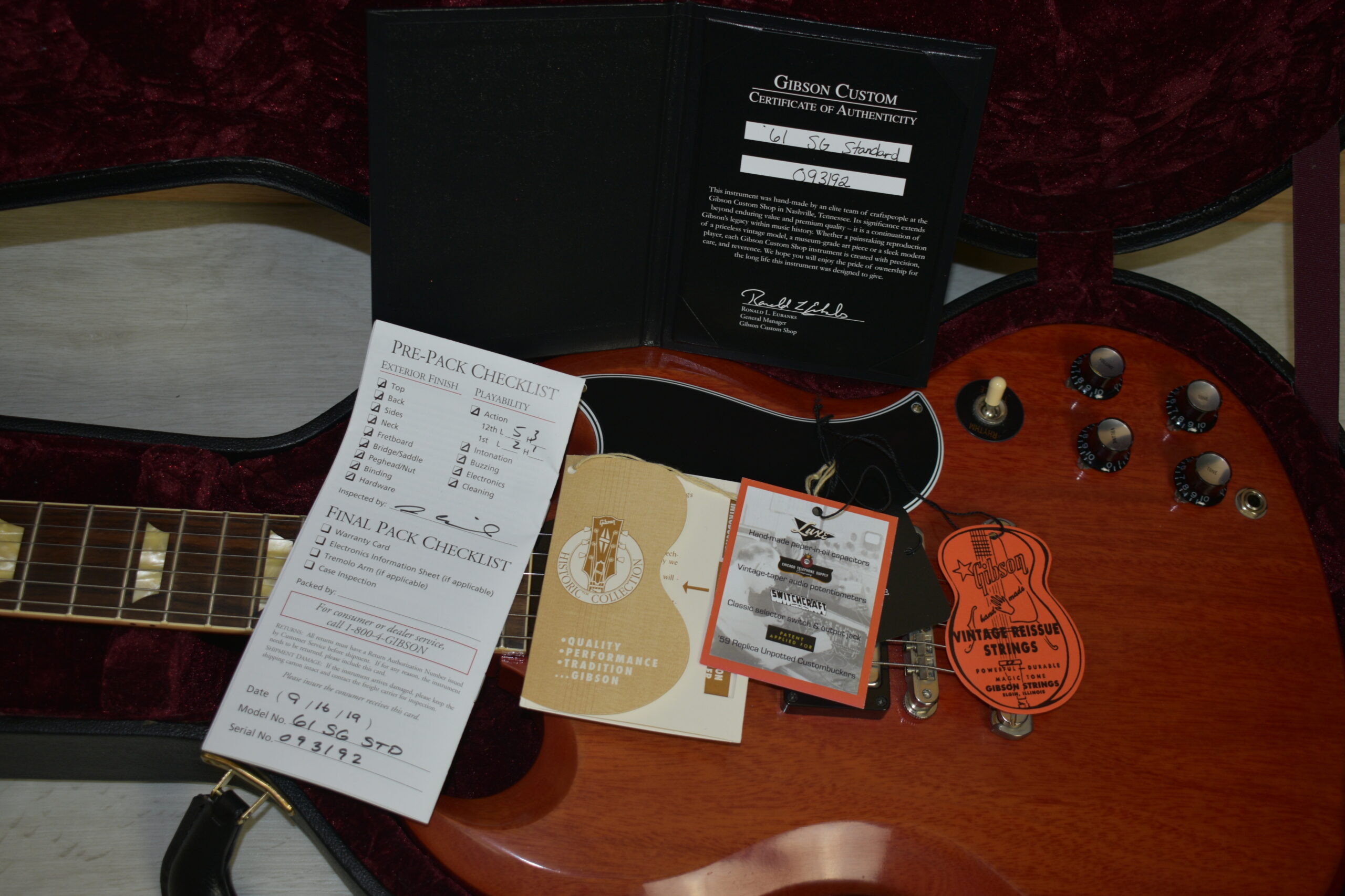 A 1960s SG has been the favorite of some of the most iconic guitarists ever…Angus Young, Tony Iommi, Robby Krieger, George Harrison, Dickey Betts, Gary Rossington, and Eric Clapton, to name a few. The SG’s devilish points and curves, blistering humbucker tone and fast-playing neck help to make it one of the most coveted and revered 1960s Gibson models. This Custom Shop Historic Reissue SG continues the legendary magic of the originals with all solid woods, historic hide-glue construction methods, the finest vintage replica parts and materials available and the instantly-recognizable, powerful tone of pure rock ‘n roll.