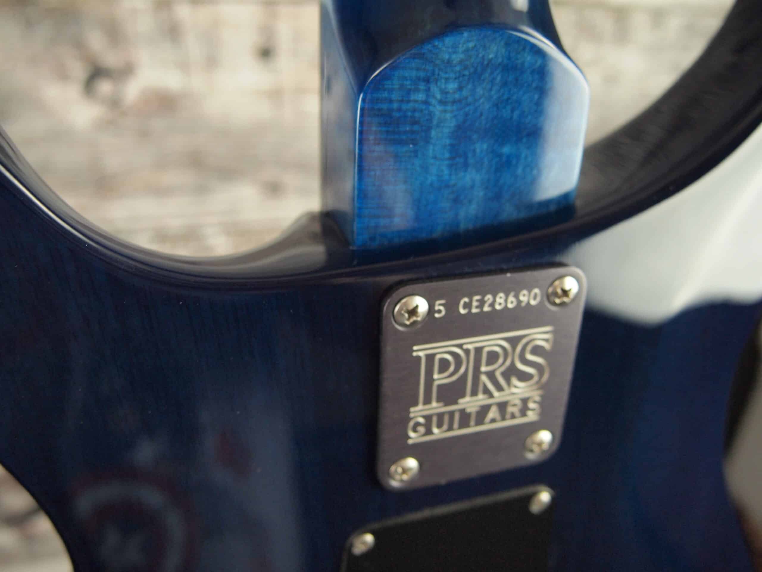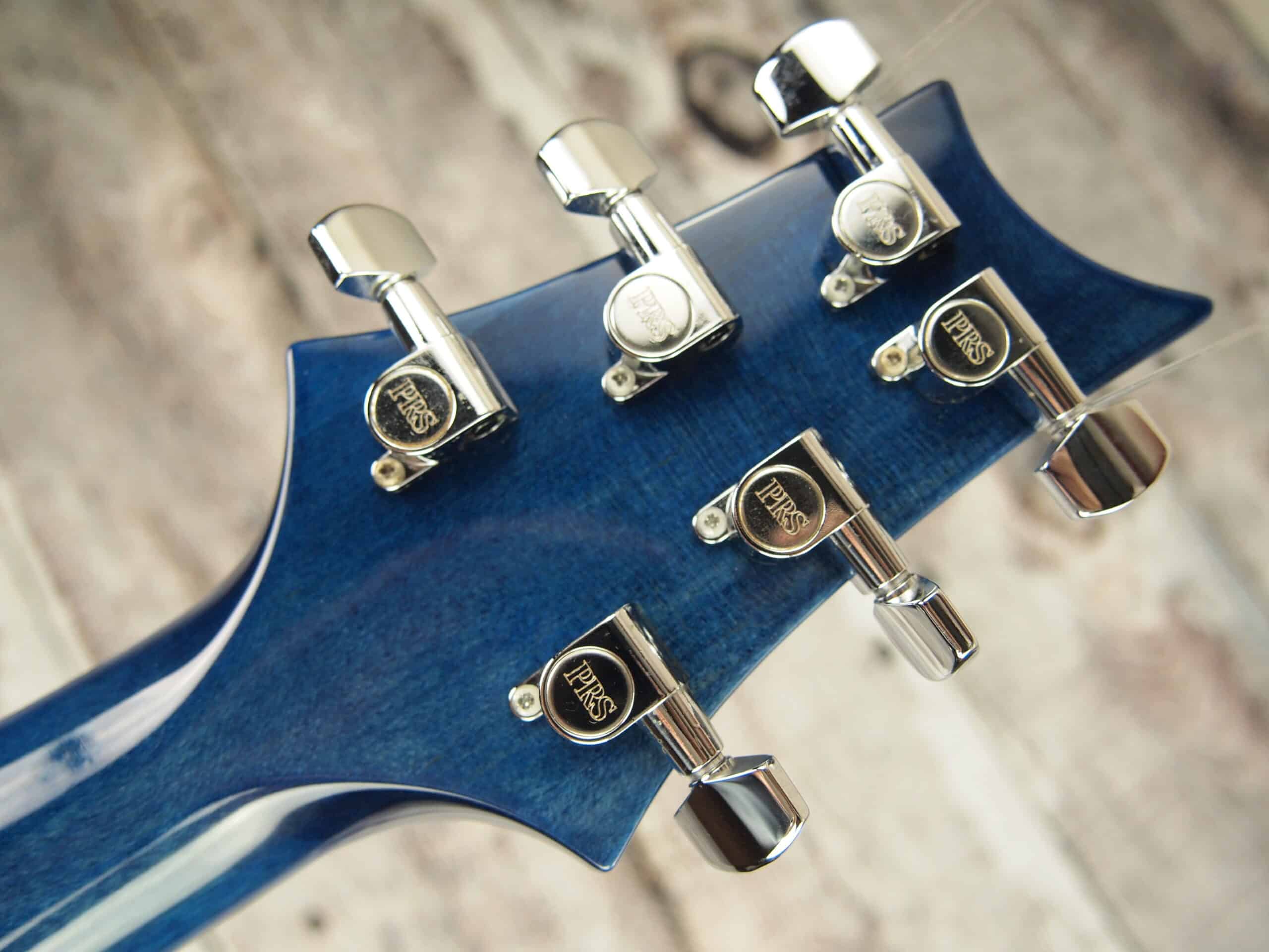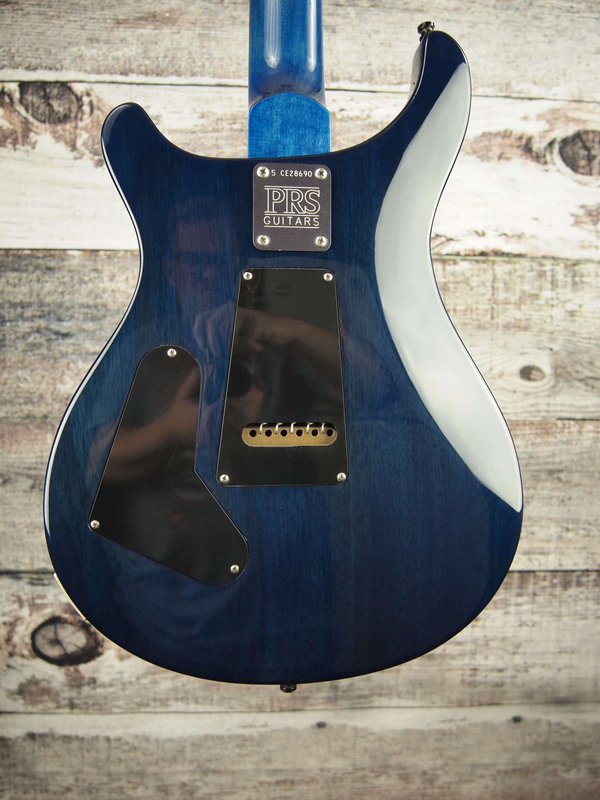 This came to us a stock Paul Reed Smith. The finish was pretty rough, so we decided that it needed a makeover. We have had success with our custom made T-casters covered in fabric and felt this one was a candidate for this cool fabric top. The back has been painted in trans blue. It also comes with the hard shell case.