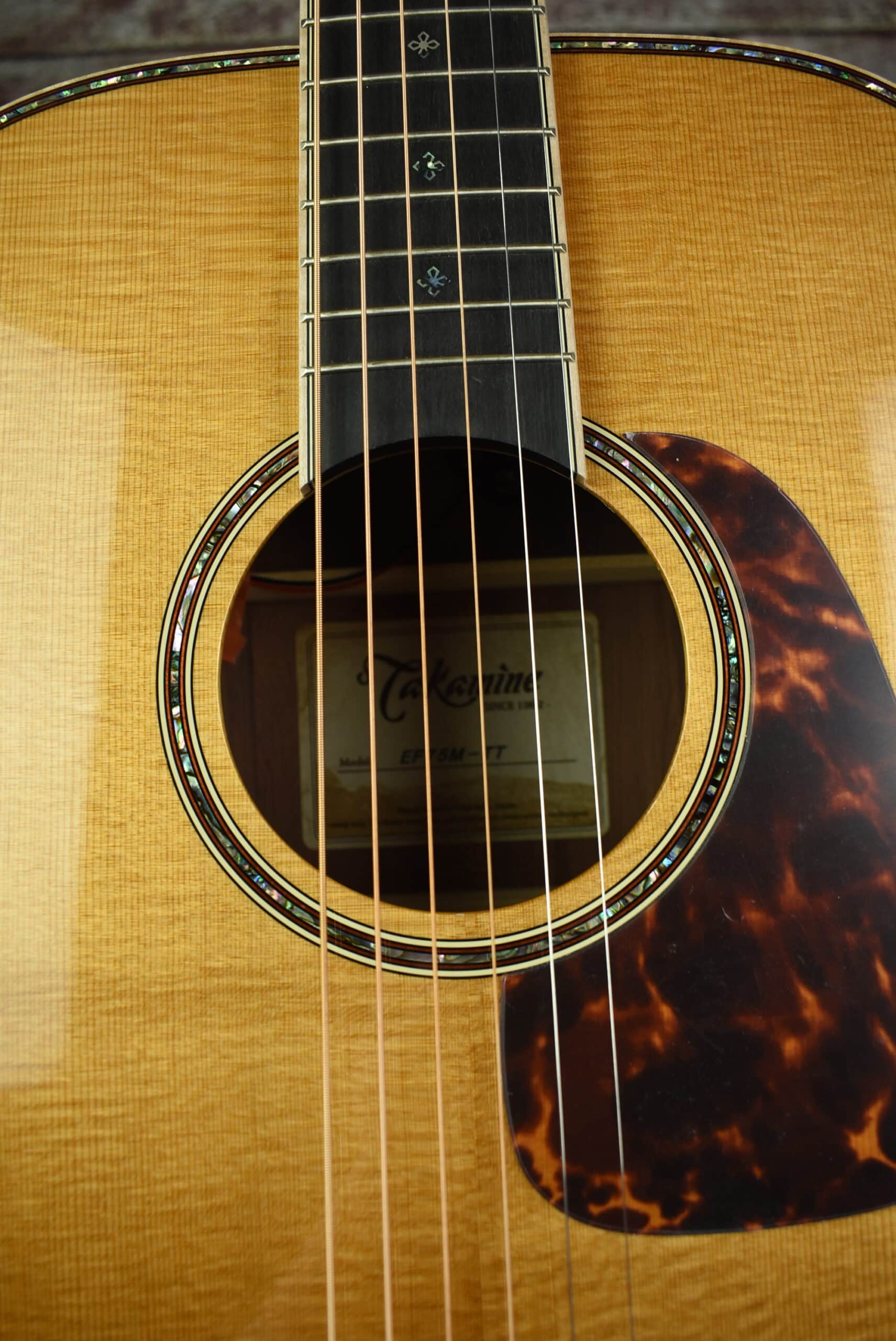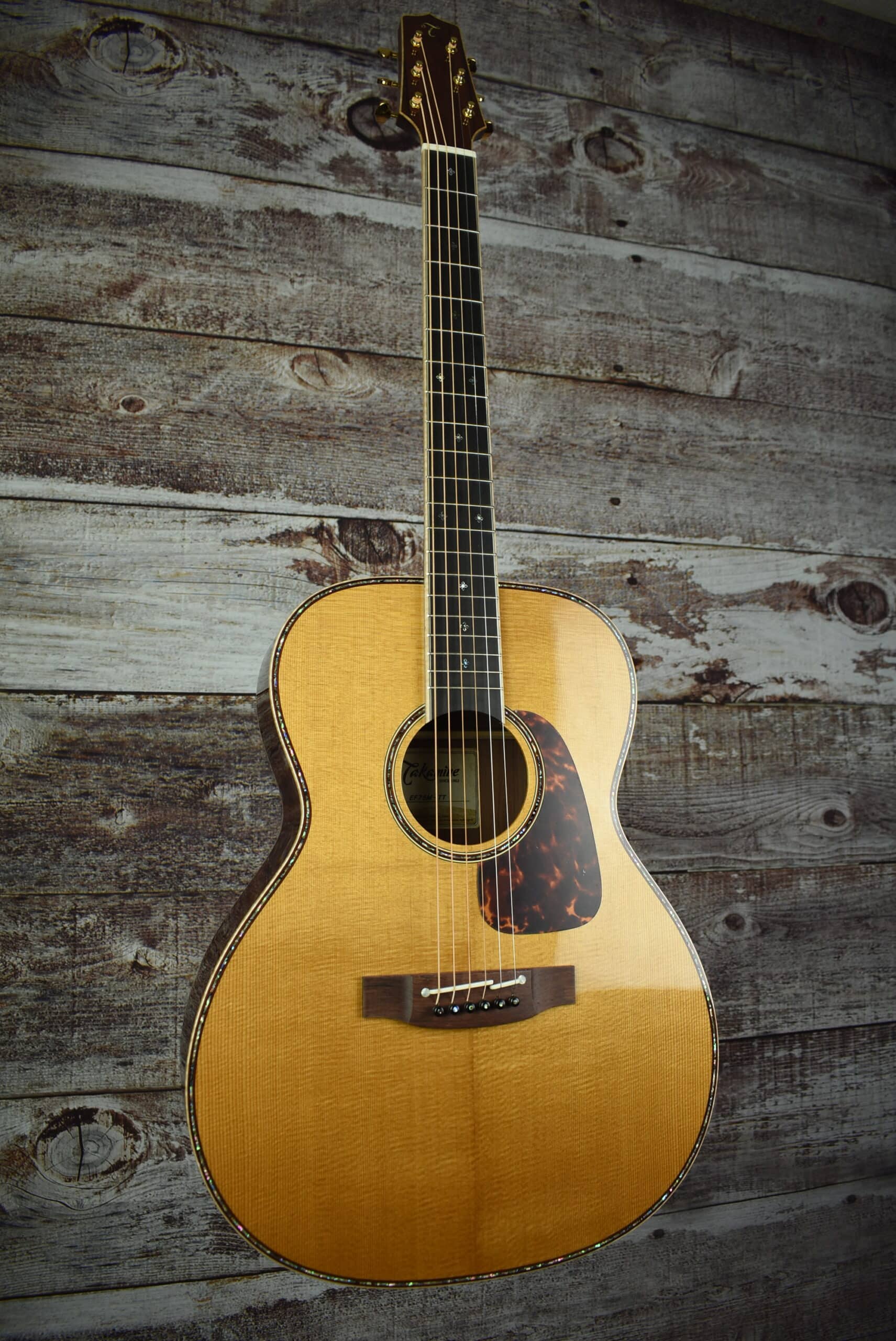 Every company has guitars that acheive legendary status. From 2006-2008 Takamine produced the EF75S, an OM guitar with AAA Sitka Spruce top, and Brazilian rosewood back and sides. Only about 80 were produced, and they have been sought after ever since. This year, Takamine brings this thunderous instrument back with the EF75M TT. It is similar to it’s predecessor in appointments, but utilizes a “Thermal” heat treated spruce top, and ultra-rare Madagascar rosewood. The guitar has beautiful abalone purfling and flame maple binding. Truly a breathtaking instrument with wonderful sweet, balanced tone. The guitar incorporates Takamine’s stealthy TLD 2 Line Driver electronics for great, natural stage sound. This guitar is pure magic—you just can’t put it down. Limited to 100 pieces worldwide.