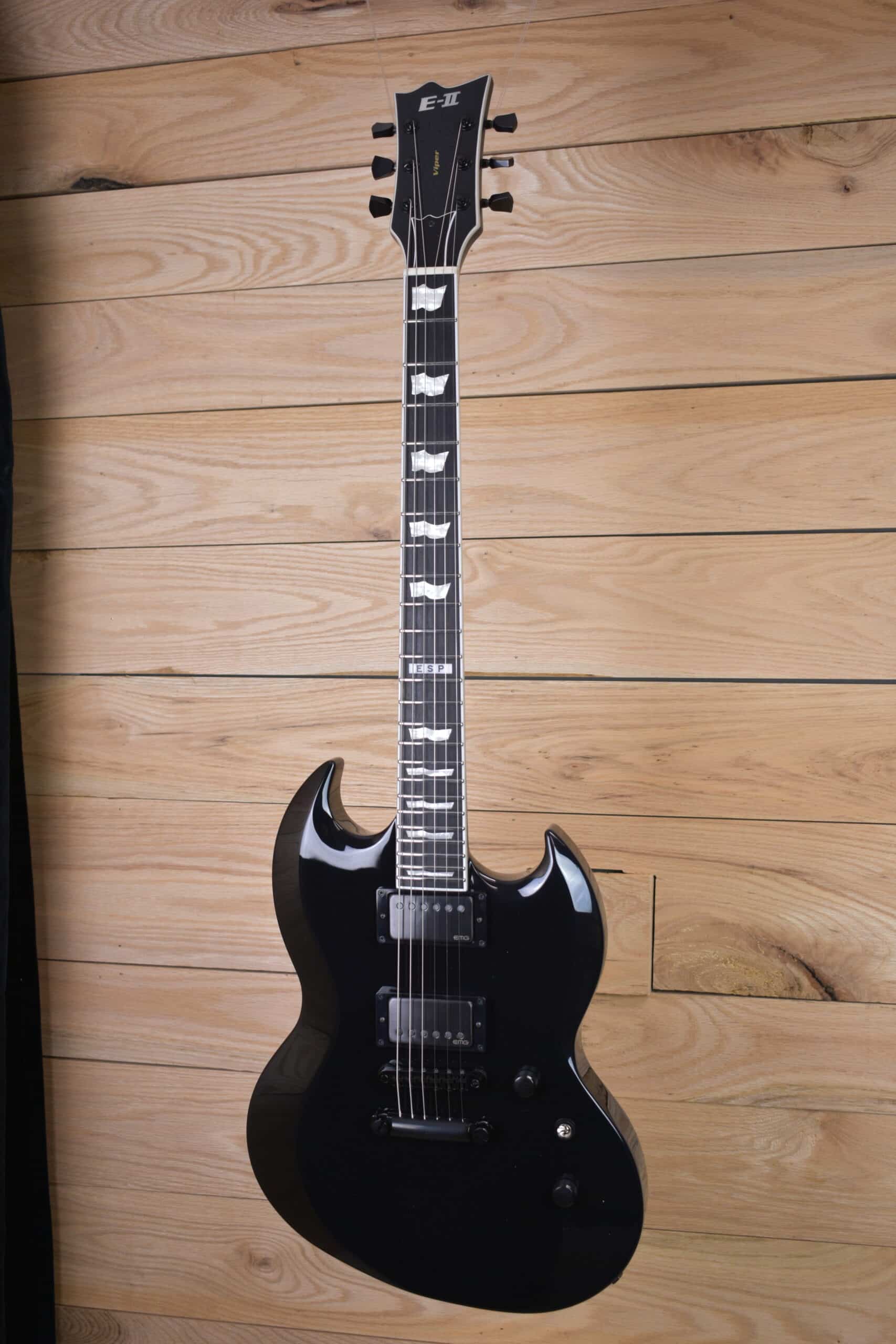 If you’ve been wanting a premium edition of ESP’s famous asymmetrical double-cut Viper shape, the E-II Viper is here. Built in Japan, it includes a number of features that put it high above the rest, like set-thru construction with its mahogany body and neck, and components like its bone nut, ESP strap locks, Gotoh locking tuners, and Gotoh TOM bridge and tailpiece. Available in both Black and Urban Camo finishes, the E-II Viper also includes an EMG 66TW/57TW pickup set with separate push-pull controls on each control knob for coil splitting each pickup individually. Includes ESP hardshell case.