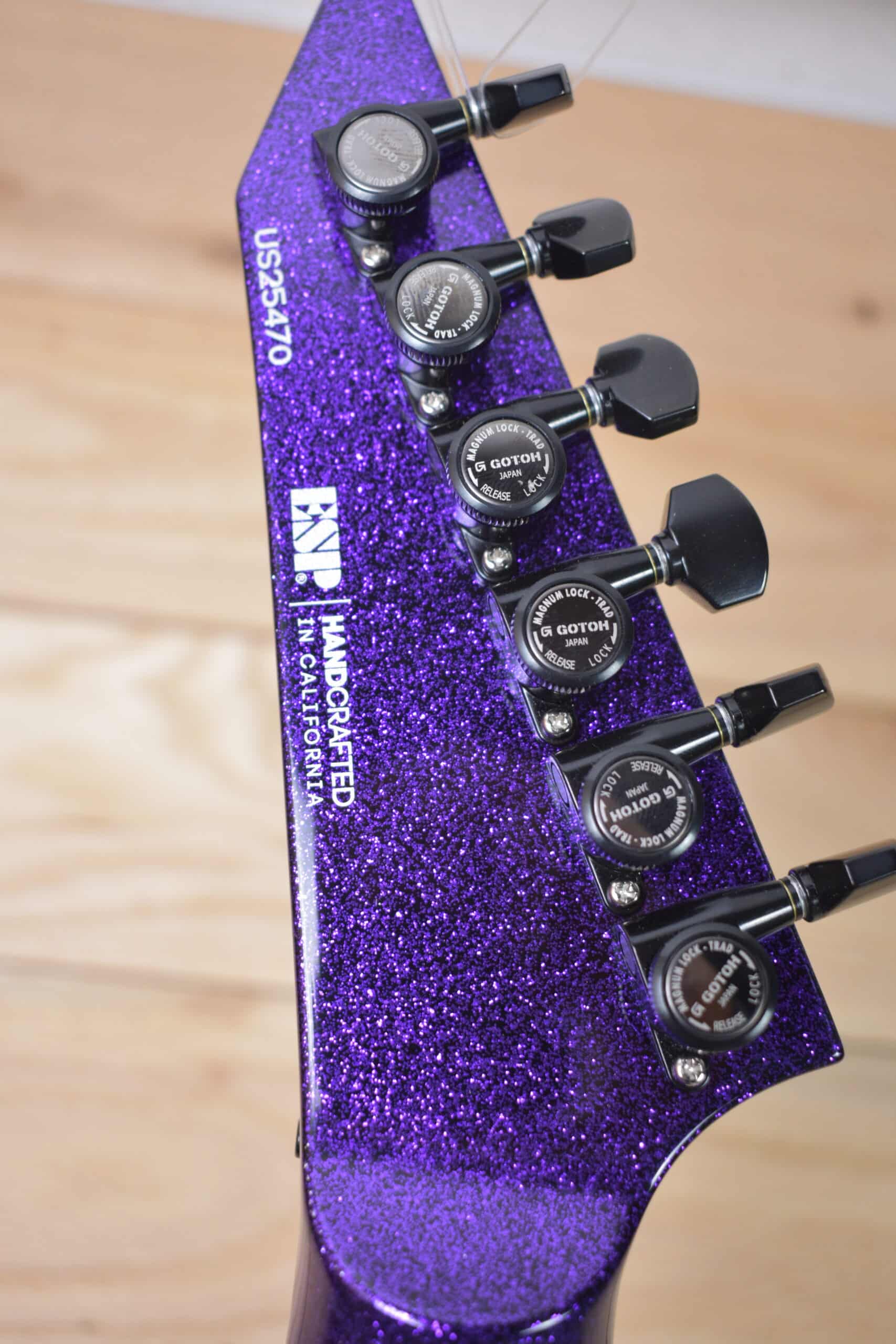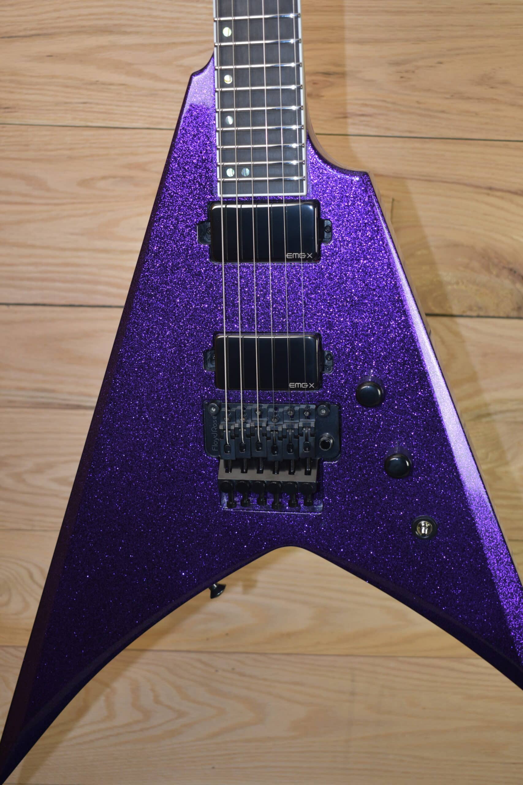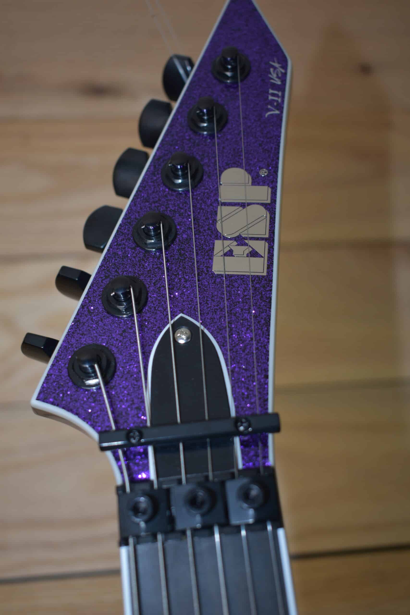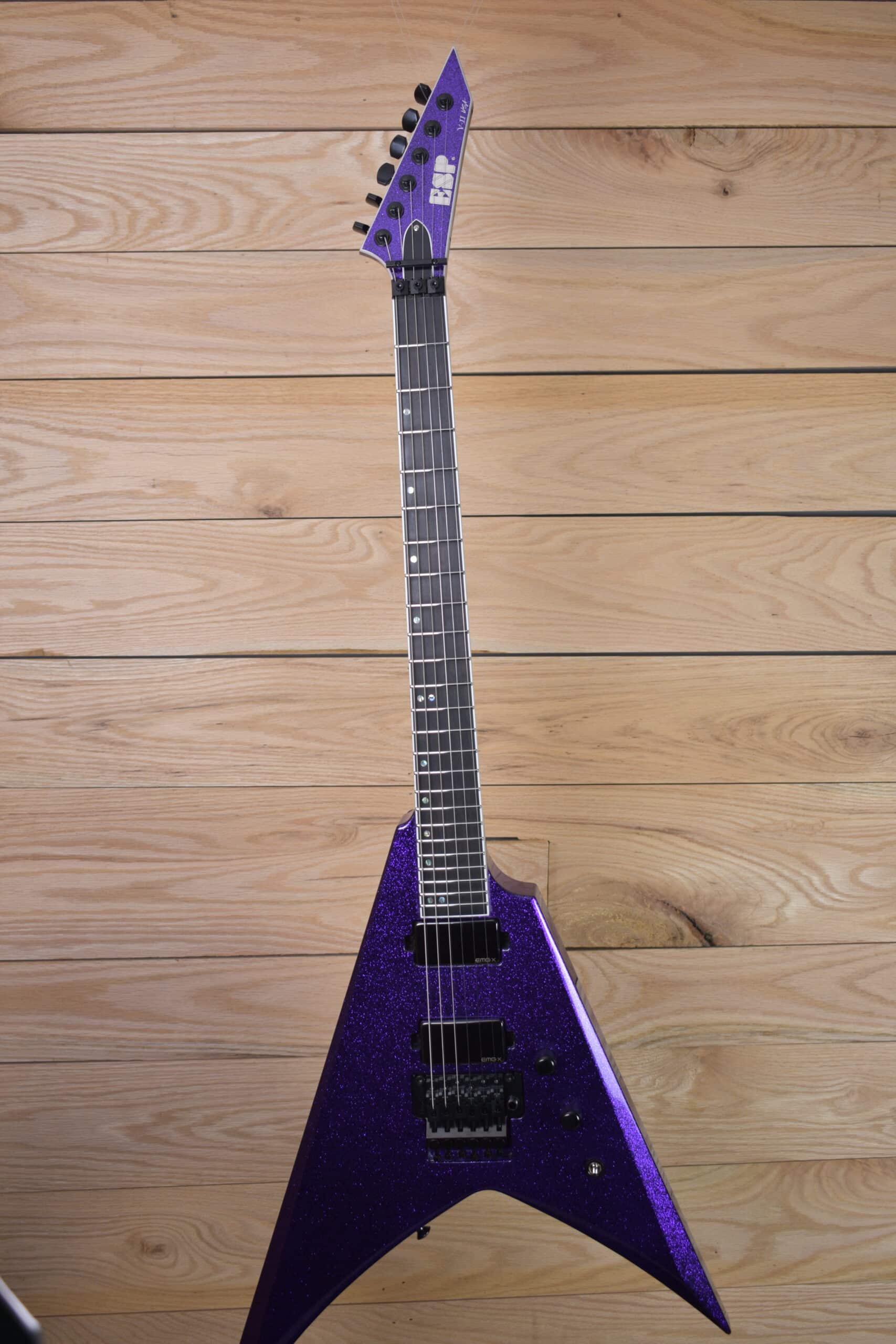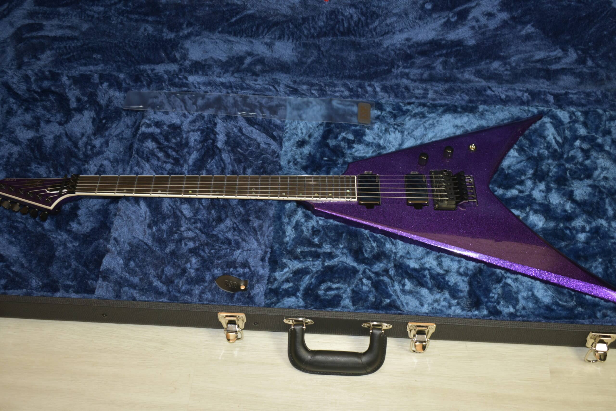 The parts and components on the USA V-II FR are second to none, and include 24 extra-jumbo Jescar stainless steel frets, an Original Floyd Rose floating tremolo, Gotoh Magnum Lock tuners, Dunlop strap locks, and a variety of high-end Seymour Duncan, EMG or Fishman pickups, with a push-pull coil split control on the tone knob for passive pickup models. The USA V-II FR includes a high-quality ESP USA form-fitting hard shell case.