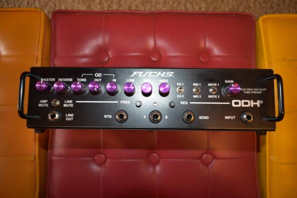 Like the Fuchs ODS-Classic amps, the ODH clean preamp features the expected 3-position brite switch, a 3-position mid-boost switch, and a 3-position EQ switch (two EQ’s and tone bypasss/gain boost), as well as high, mid and low tone controls. The clean preamp drives the overdrive section in true D-Style fashion. The clean channel is warm and bouncy, and excellent for clean jazz or Mayer-style articulate and immaculate clean tones. Whether a humbucker or single coil, the clean channel can be shaped using the highly flexible eq switches and tone controls to match any tonal goal.