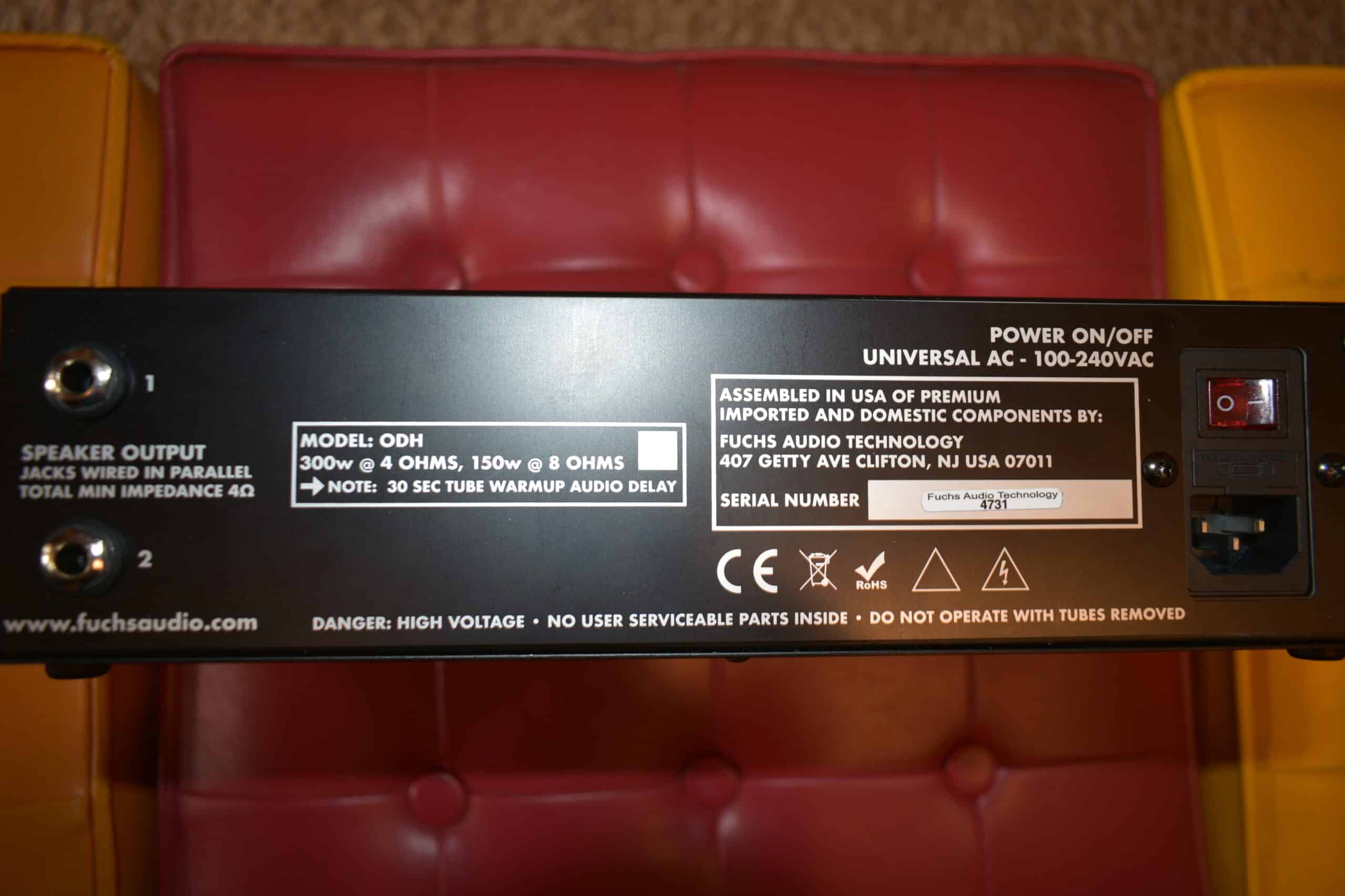 The ODH comes with a two-way footswitch for channels and gain boost. A 30 second mute timer assures the tubes are fully warmed-up before the power amp goes live. A three color LED shows mute, operate and changes color depending on the channel selected.
