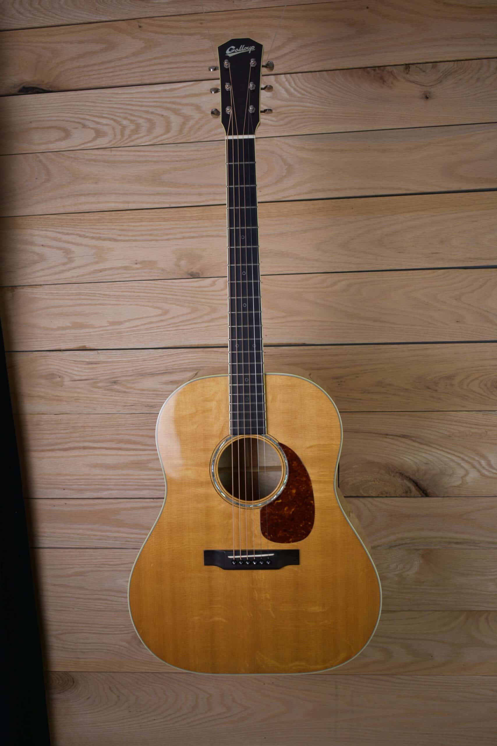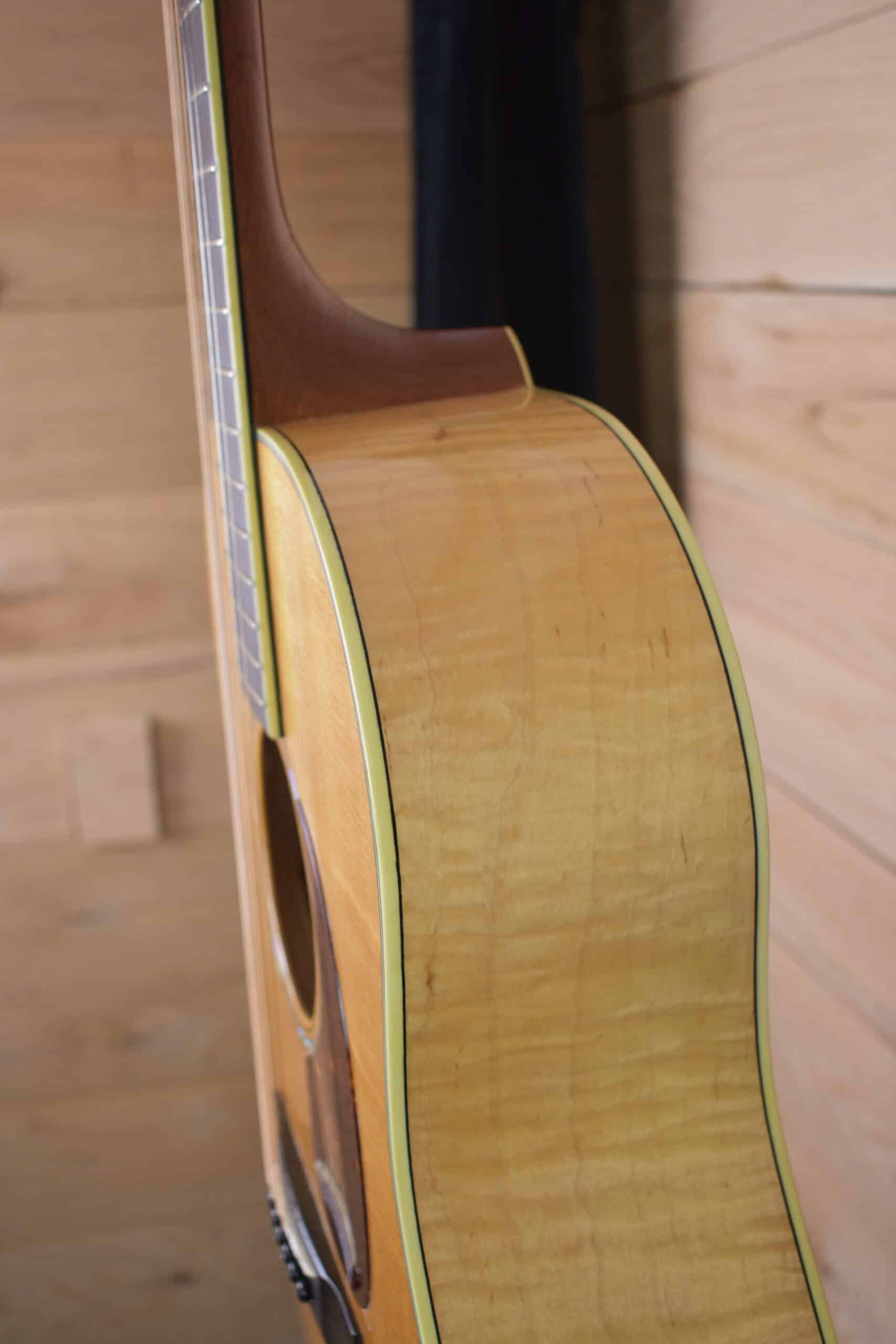 Custom made Galloup acoustic guitar. Sloped shoulder dreadnought, Beautiful flamed maple back and sides. Bear claw Sitka spruce top. one of a kind hand built guitar.