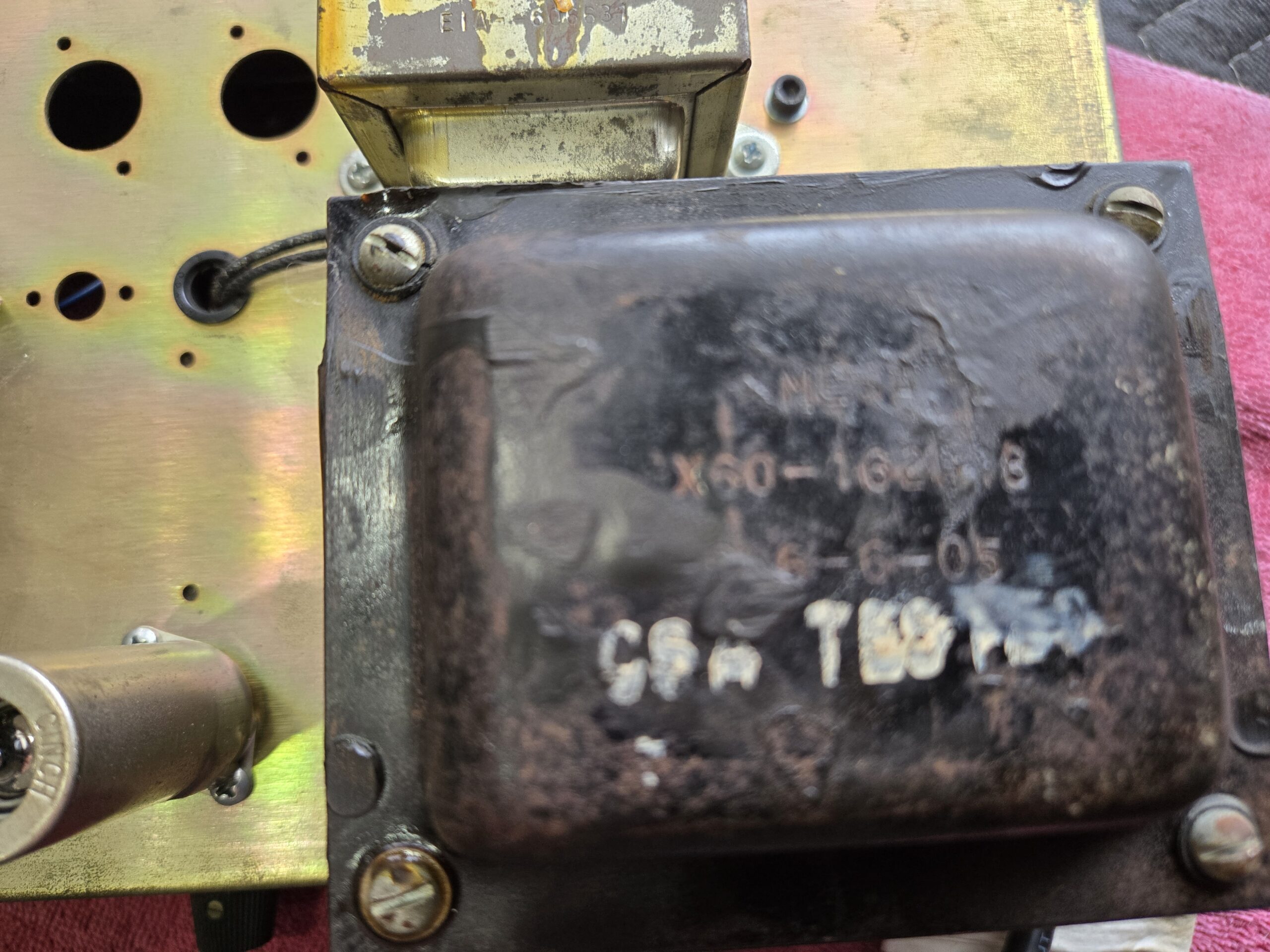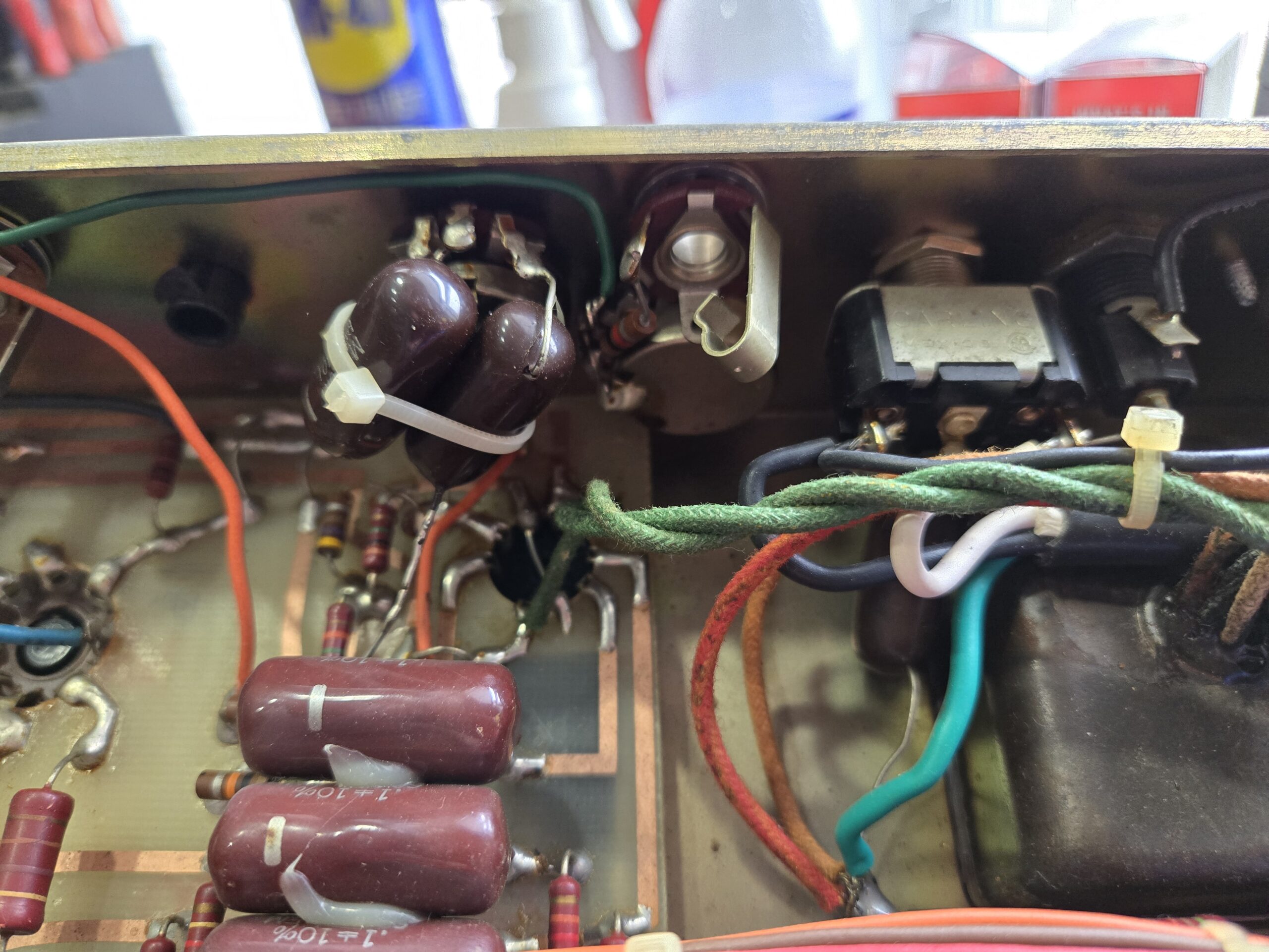 Some rips in the tolex and surface rust on the hardware.
